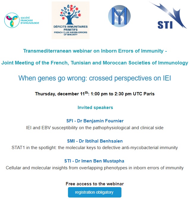 Home » évènements à venir » Transmediterranean webinar on Inborn Errors of Immunity